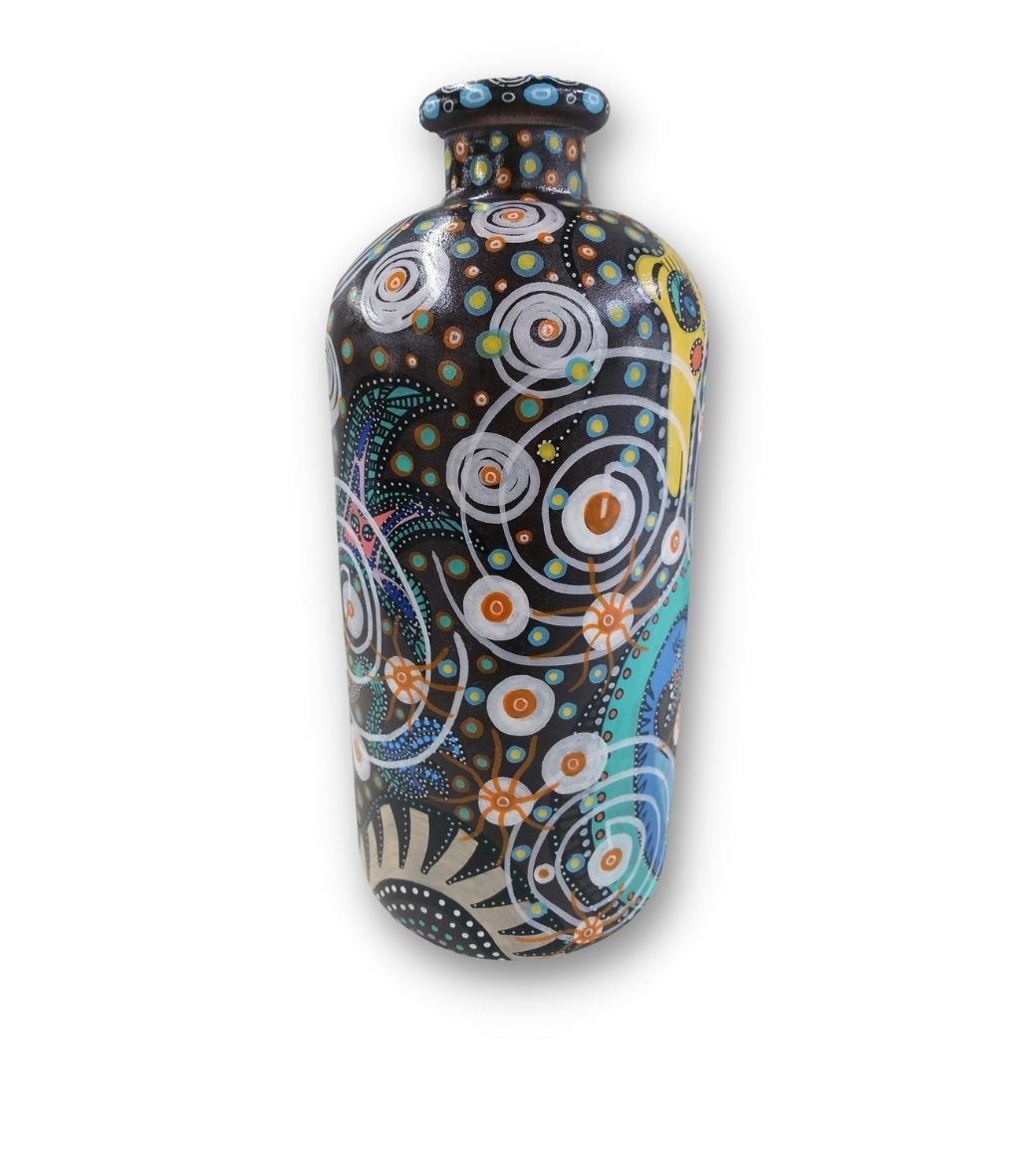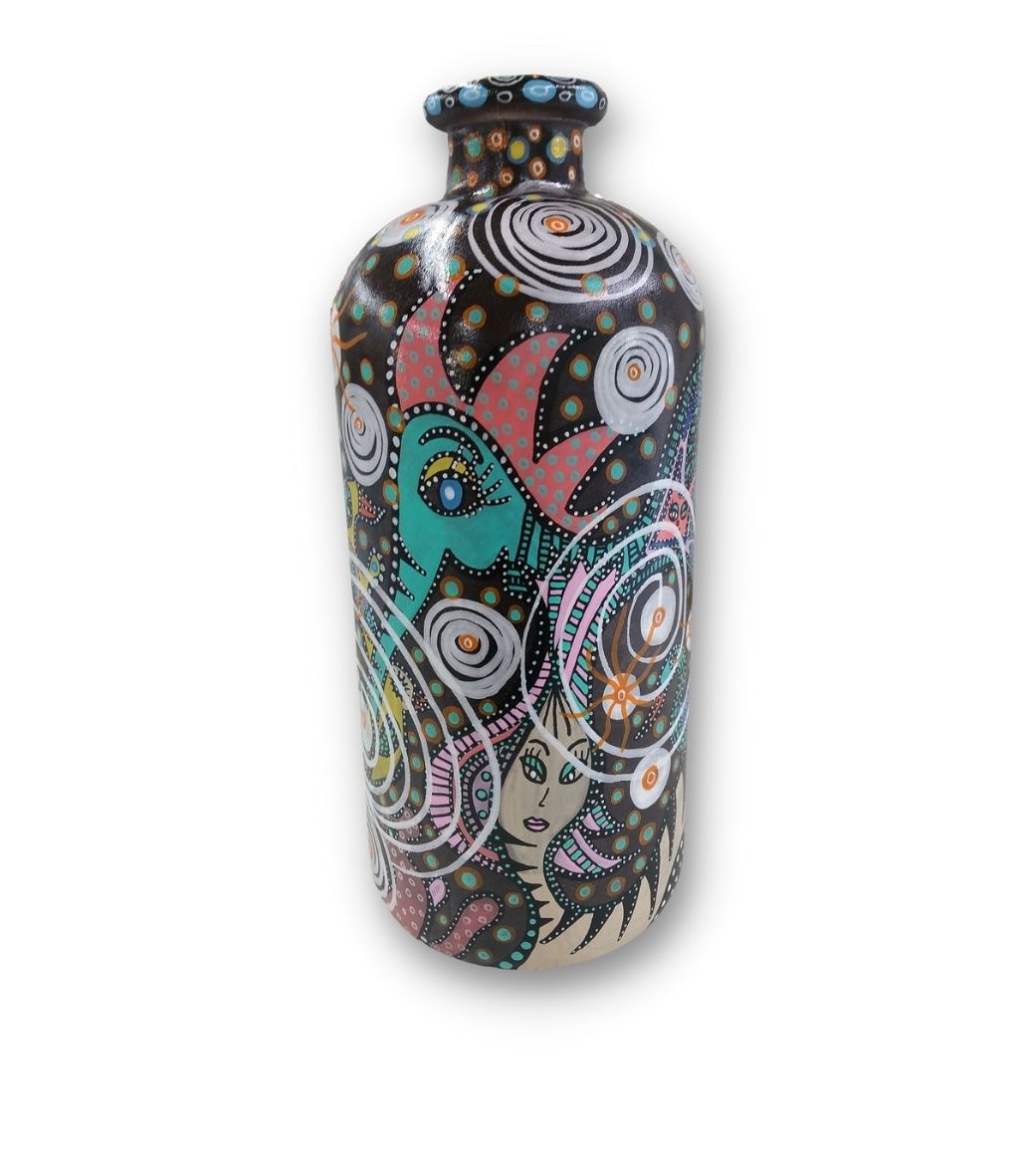 En form for upcykling af et allerede eksisterende emne, som f.eks. denne vase (som hun ikke selv har skabt), der her danner baggrund for hendes kunst. Kun fantasien sætter grænsen.