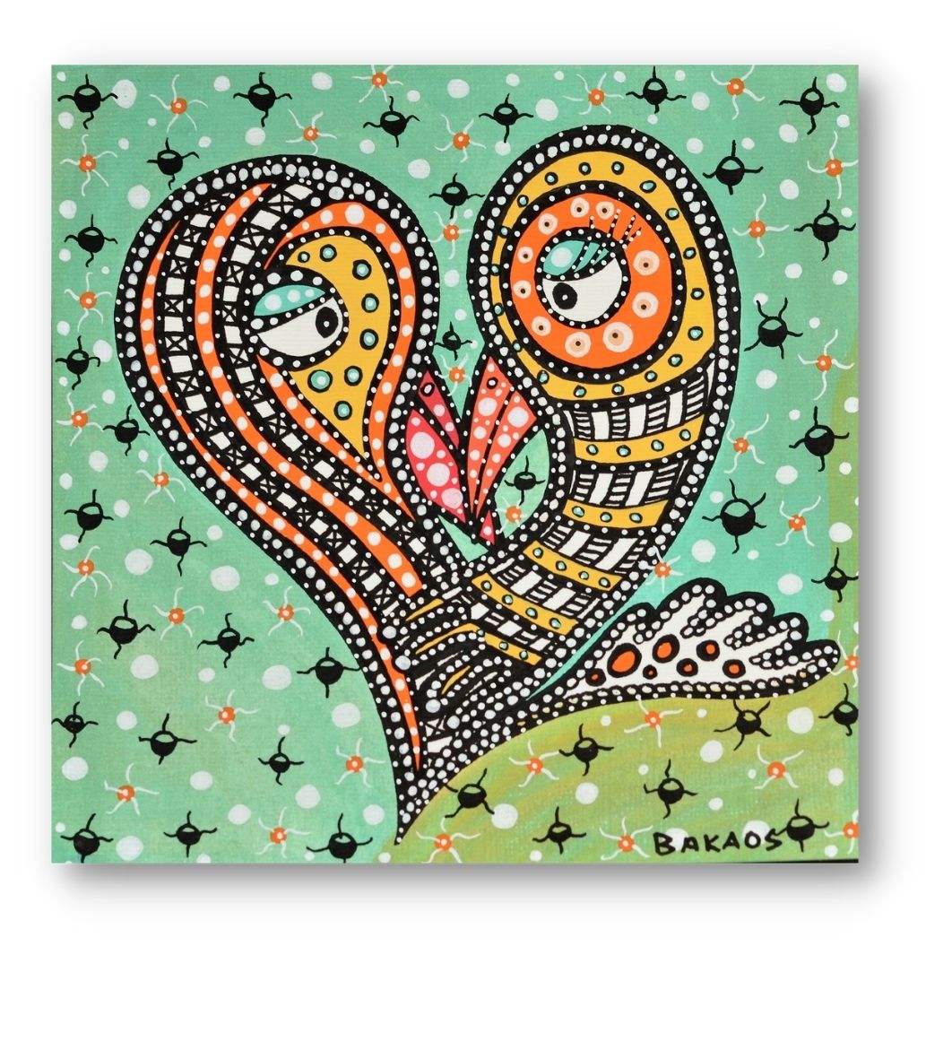 Billederne her på siden kan på ingen måde gengive originalværkets kvalitet, farver og struktur og du er derfor altid velkommen til at besøge BAKAOS i hendes atelier for at se værkerne i virkeligheden. Besøg efter aftale. Hold også øje med udstillingskalenderen.
