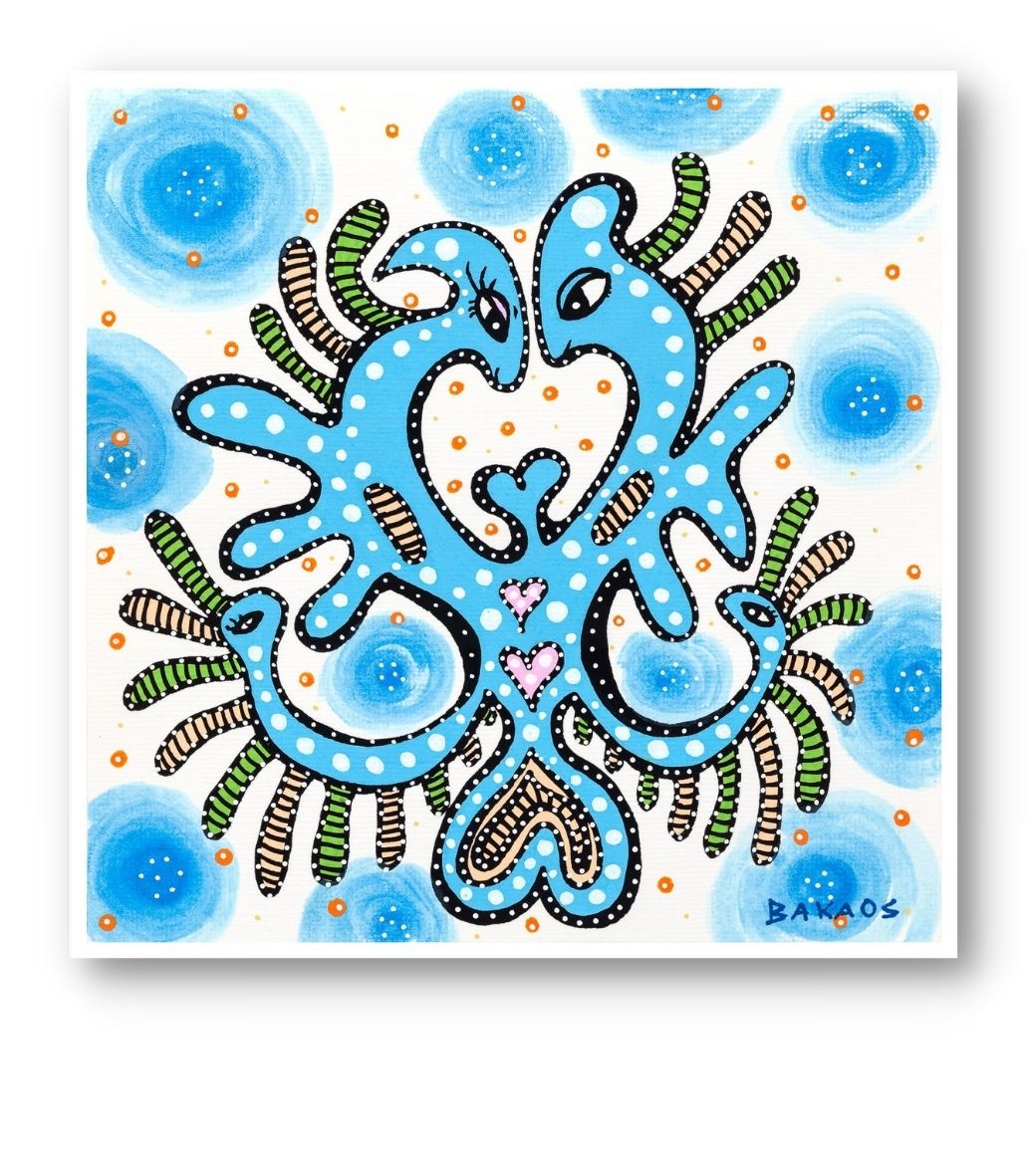 Billederne her på siden kan på ingen måde gengive originalværkets kvalitet, farver og struktur og du er derfor altid velkommen til at besøge BAKAOS i hendes atelier for at se værkerne i virkeligheden. Besøg efter aftale. Hold også øje med udstillingskalenderen.