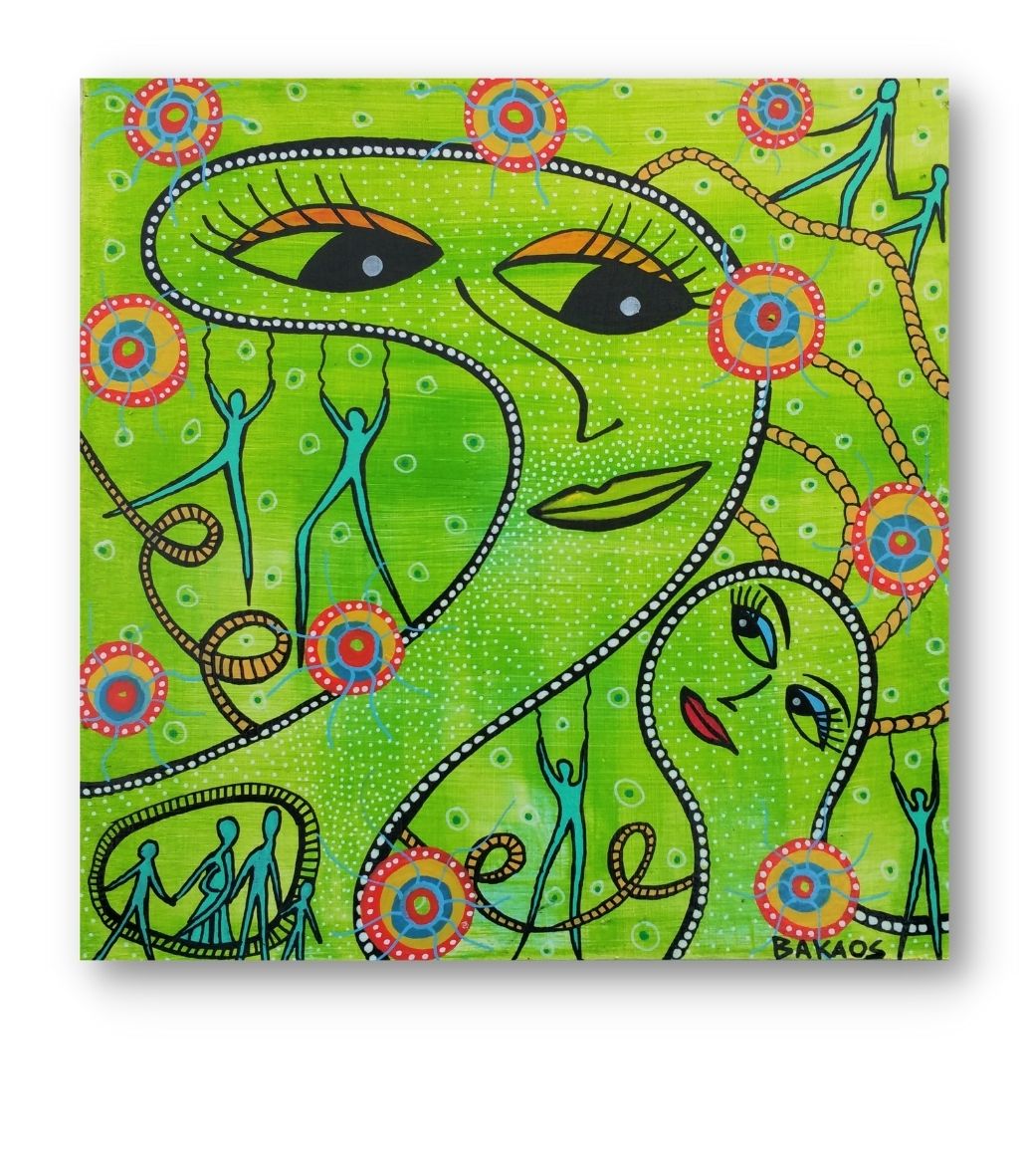 Billederne her på siden kan på ingen måde gengive originalværkets kvalitet, farver og struktur og du er derfor altid velkommen til at besøge BAKAOS i hendes atelier for at se værkerne i virkeligheden. Besøg efter aftale. Hold også øje med udstillingskalenderen.