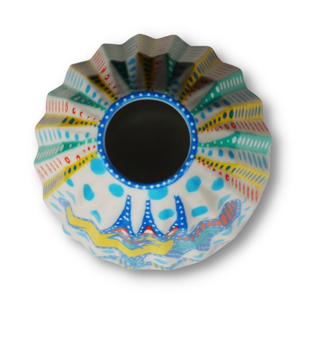 ”Jeg elsker udfordringen ved at male på plisserede vaser, hvor det hele går op og ned, op og ned.