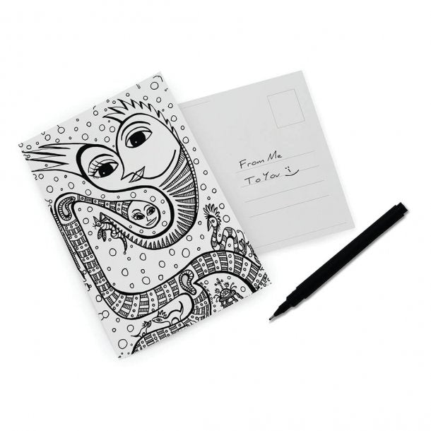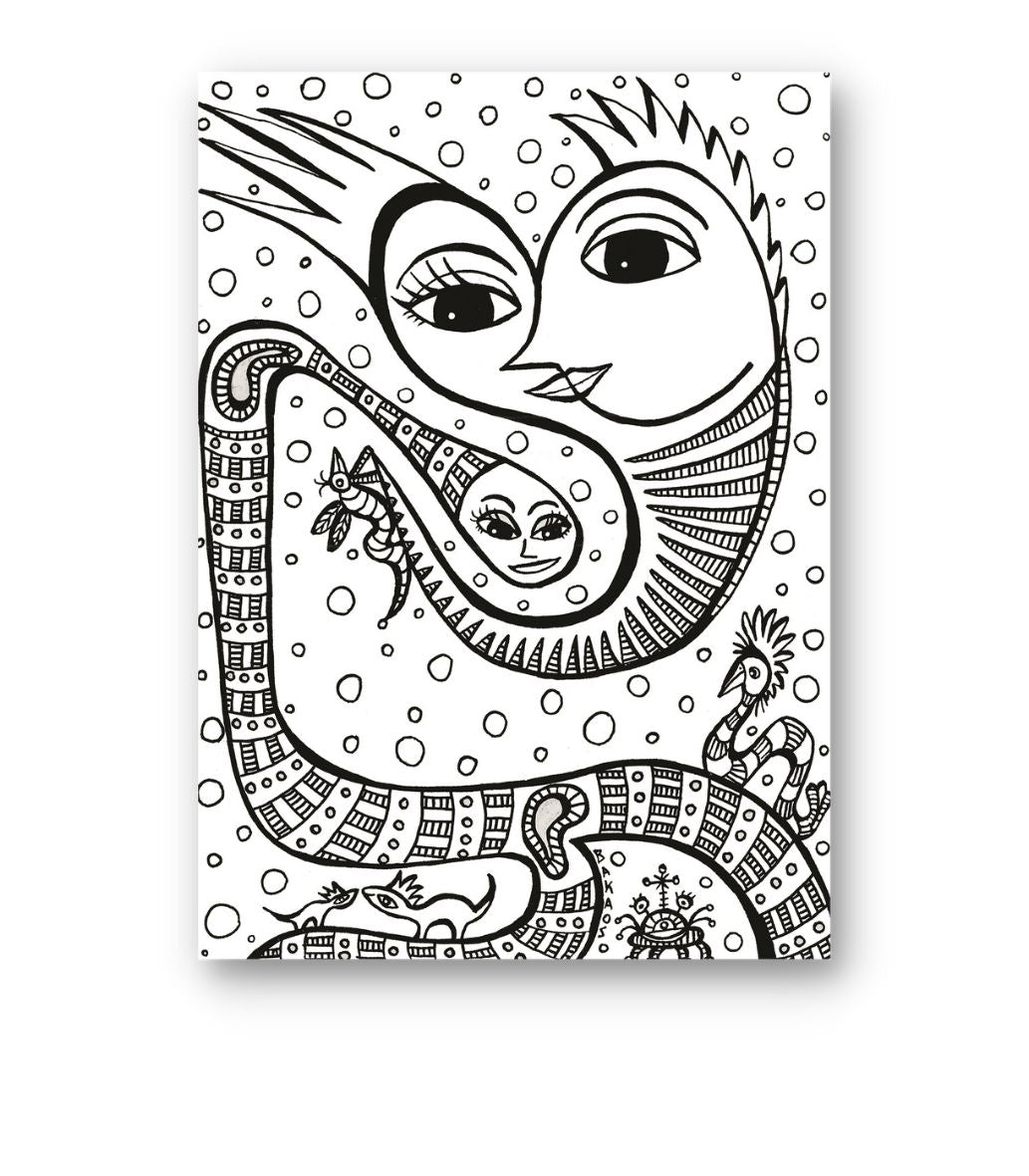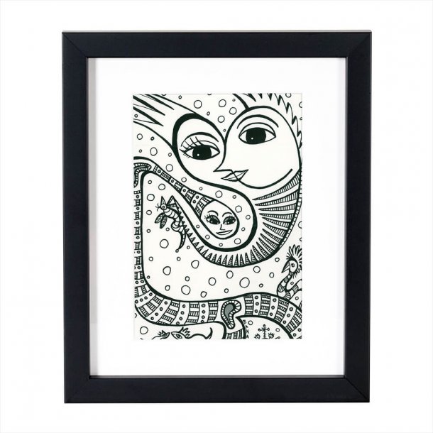 Dette kunstkort er med BAKAOS-motivet 'Trods Navlestrengens Kappen Vil Du Altid Være Mig Nær'. A5.