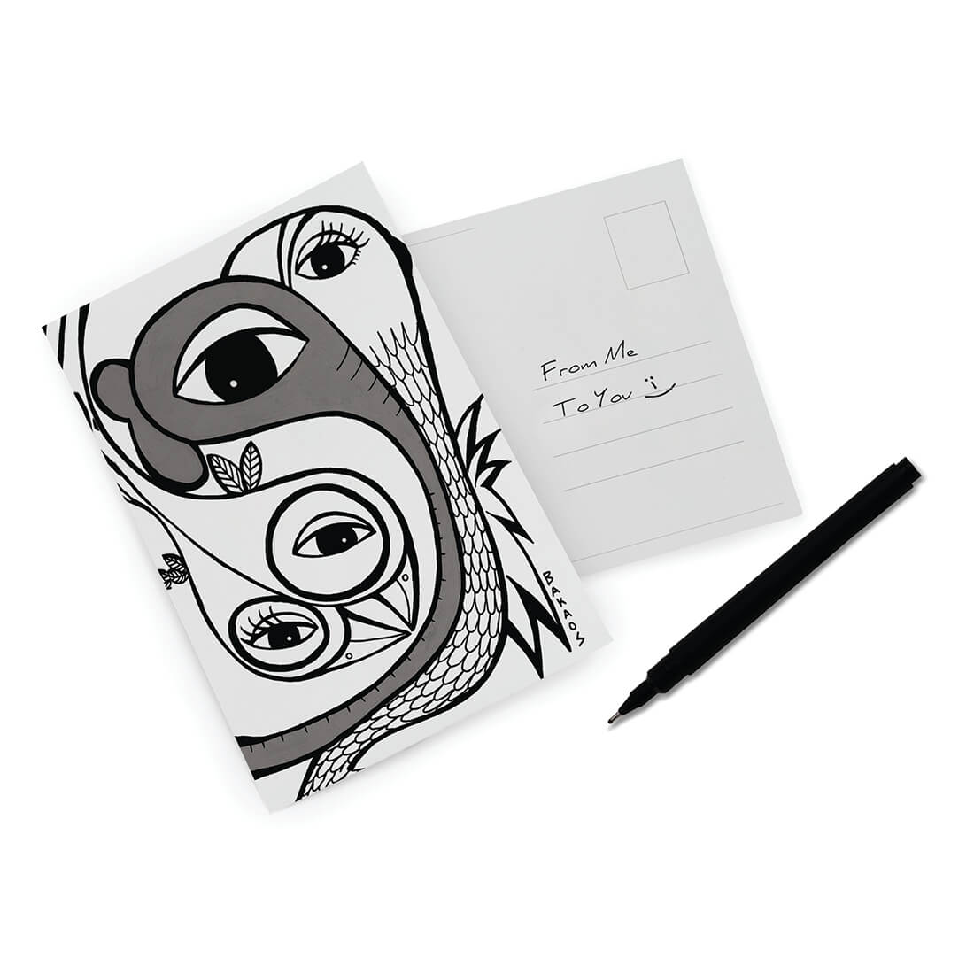 Giv kortet sammen med en gave, eller som f.eks. værtindegave sammen med nogle af de andre flotte BAKAOS-kort, med en sløjfe omkring.