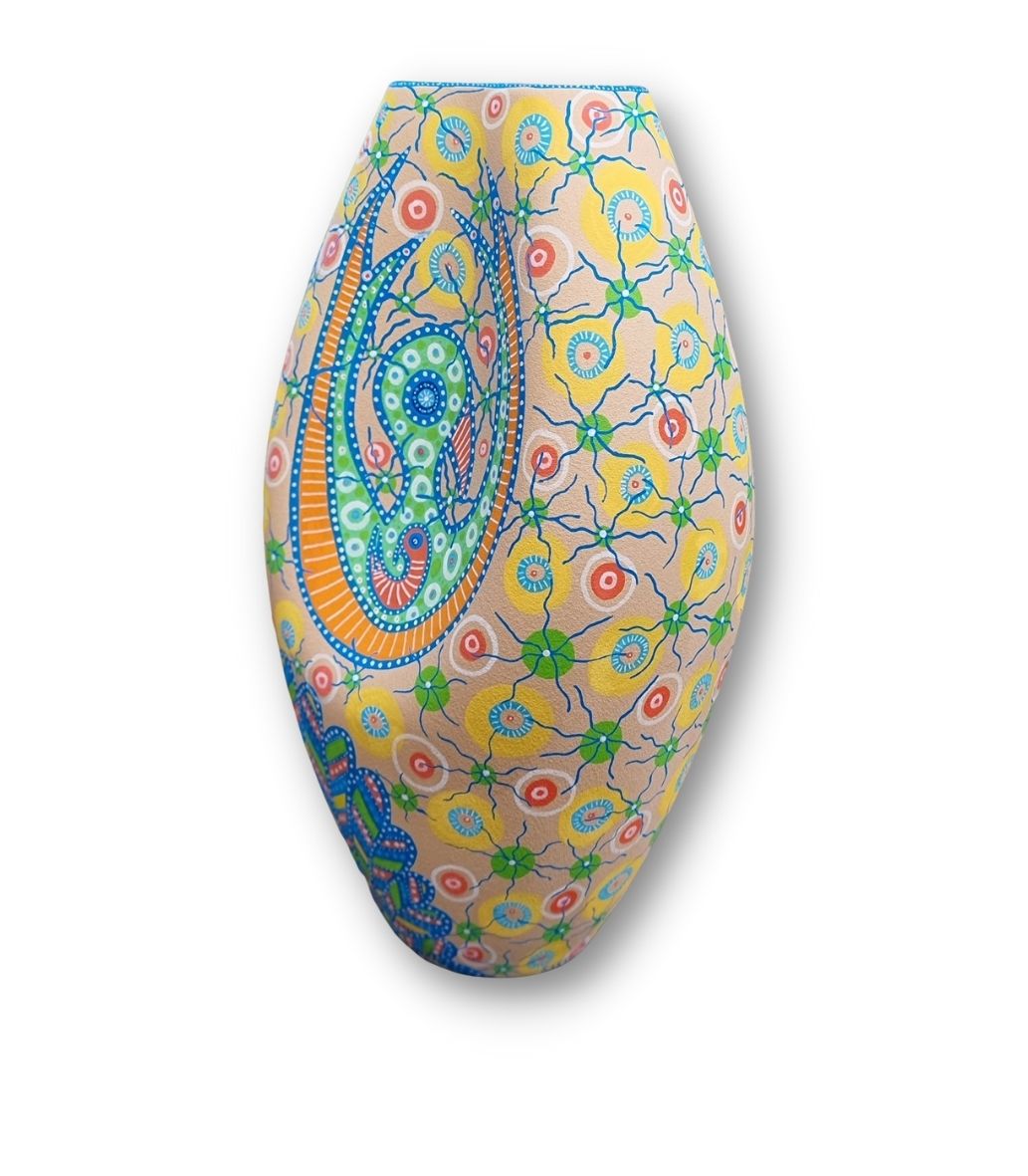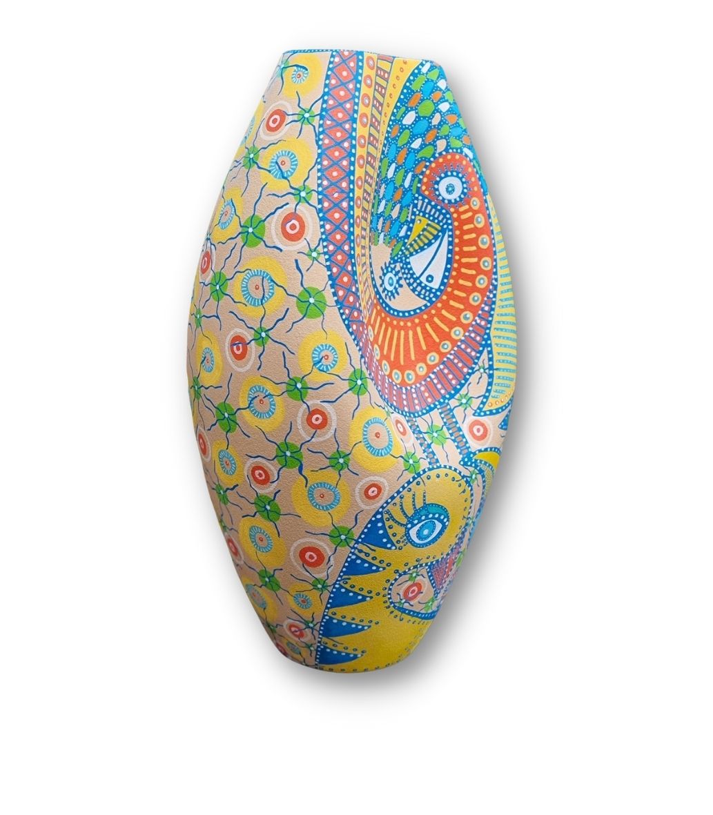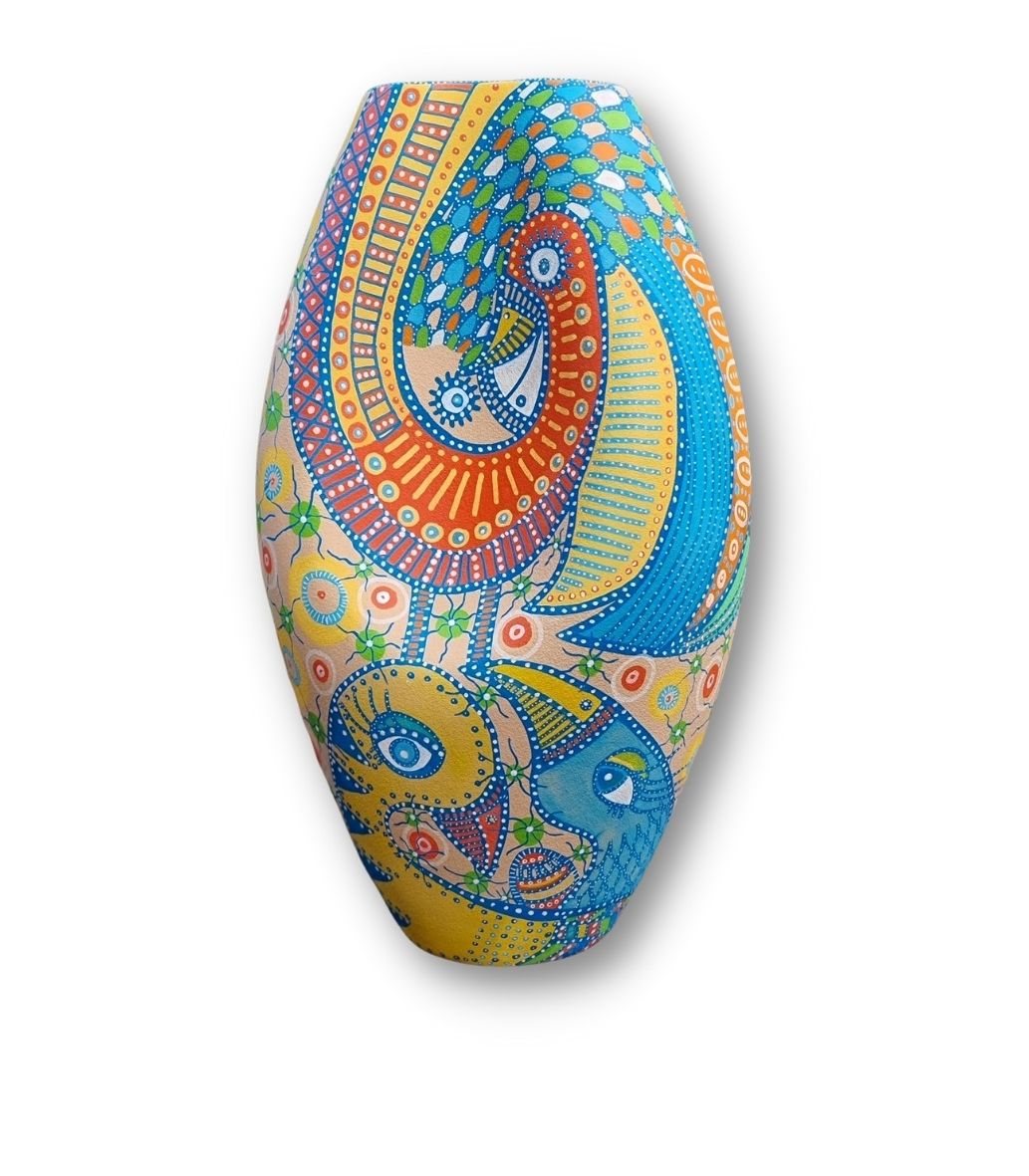Pigmenteret blæk på lertøjsvase. 39 cm
