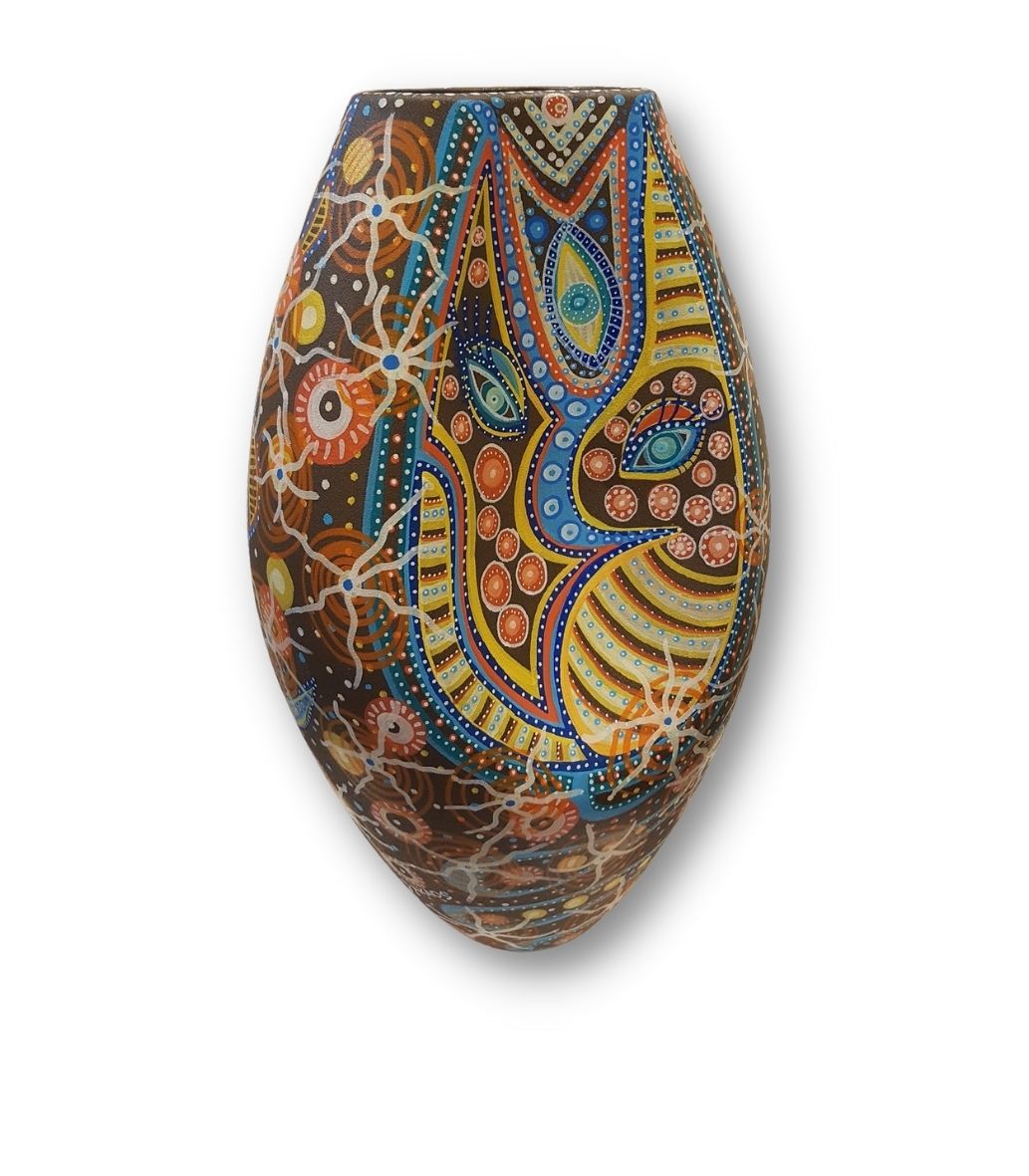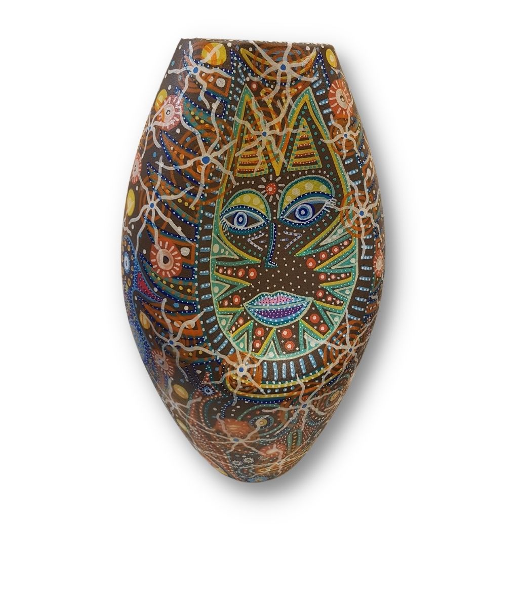 Pigmenteret blæk på lertøjsvase. 39 cm