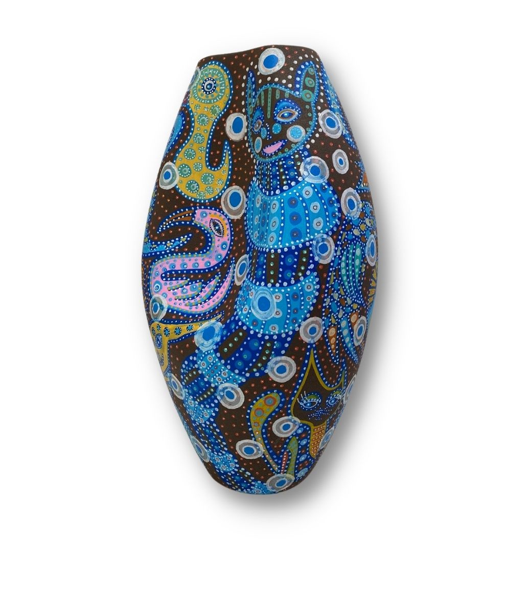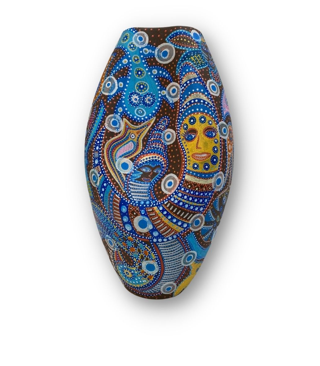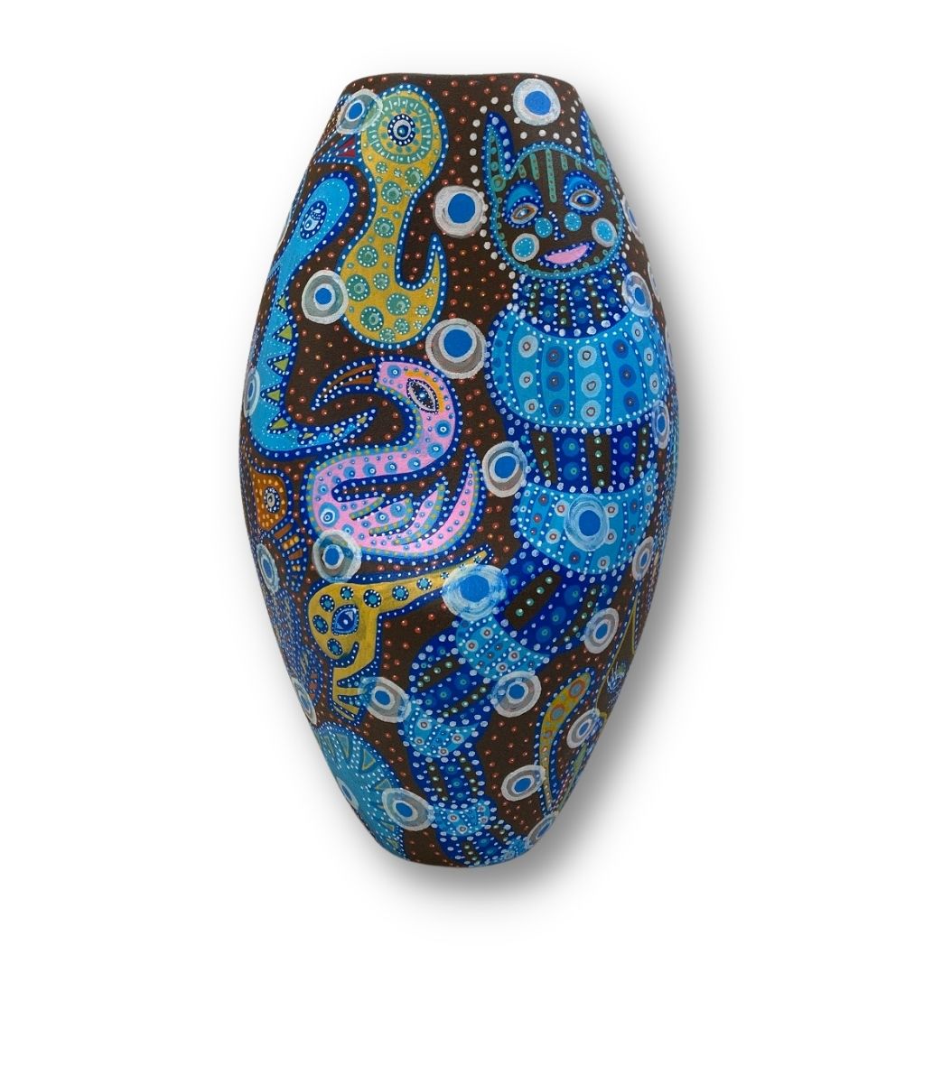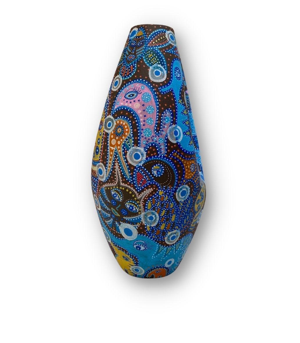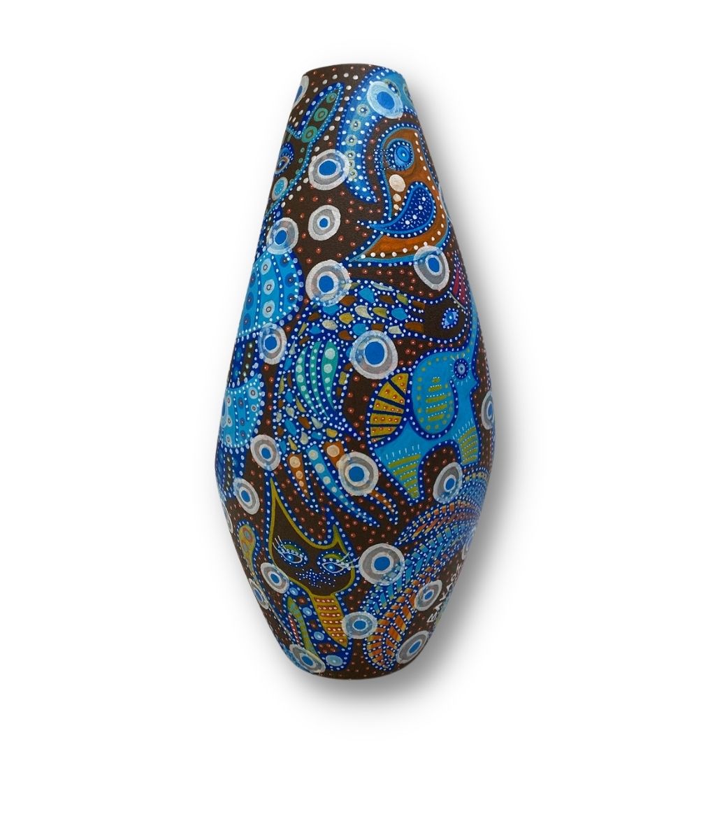 Pigmenteret blæk på lertøjsvase. 39 cm