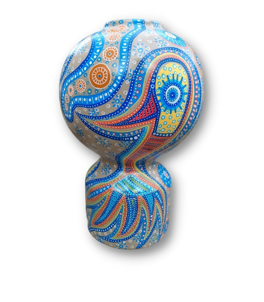 Pigmenteret blæk på lertøjsvase. 25 cm
