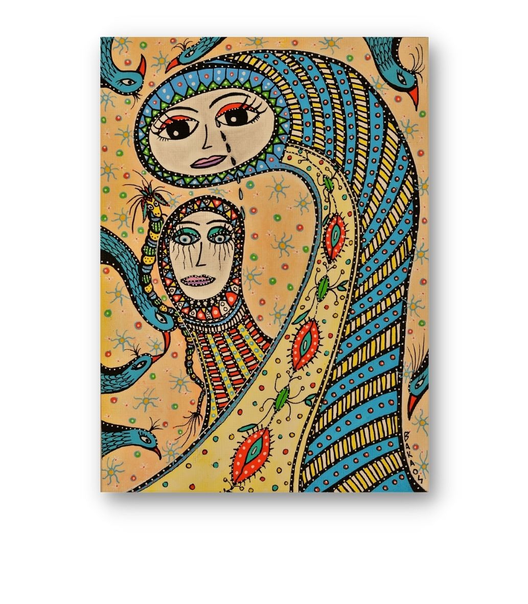 Billederne her på siden kan på ingen måde gengive originalværkets kvalitet, farver og struktur og du er derfor altid velkommen til at besøge BAKAOS i hendes atelier for at se værkerne i virkeligheden. Besøg efter aftale. Hold også øje med udstillingskalenderen.